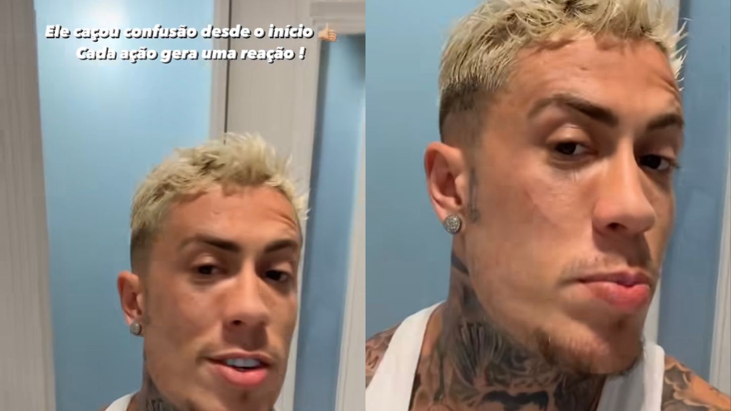 “E é só isso, só para deixar claro: eu não gosto, eu não sou um cara de briga, eu não sou um cara explosivo há muito tempo, tá bom? Não apoio esse tipo de parada, mas eu já estou me defendendo porque eu sei como as pessoas são, como as páginas funcionam, como funciona a imprensa, tá bom? Então é isso. Beijo no coração, estou em casa, estou em paz. E é nóis, estamos juntos”, concluiu.